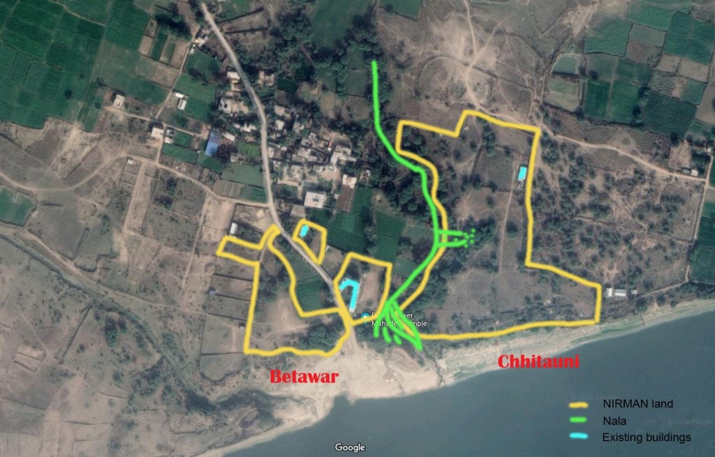 We are located about 10 km south of Varanasi, on the banks of the river Ganga. We own land in two villages: Betawar and Chhitauni, separated by a natural canal, that carries rainwater overflow from several villages into the Ganga.